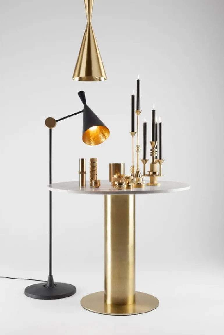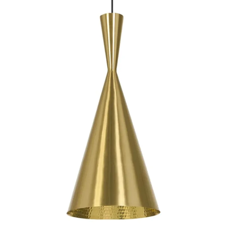Tom Dixons Beat Tall LED-pendel tillhör den skulpturala lampkollektionen som inspirerats av traditionella indiska vattenkärl. De eleganta pendellamporna tillverkas för hand av massiv mässing av lokala hantverkare i norra Indien och har en slät utsida i svart, vit eller mässing och insidan definieras av guldig glans och ett unikt hamrat mönster. Häng en ensam Beat-lampa över ditt matbord eller i vardagsrummet eller skapa en grupp med flera pendellampor som drar till sig blickarna. Lampan har en integrerad LED-modul som reflekterar ett mjukt och varmt ljus.