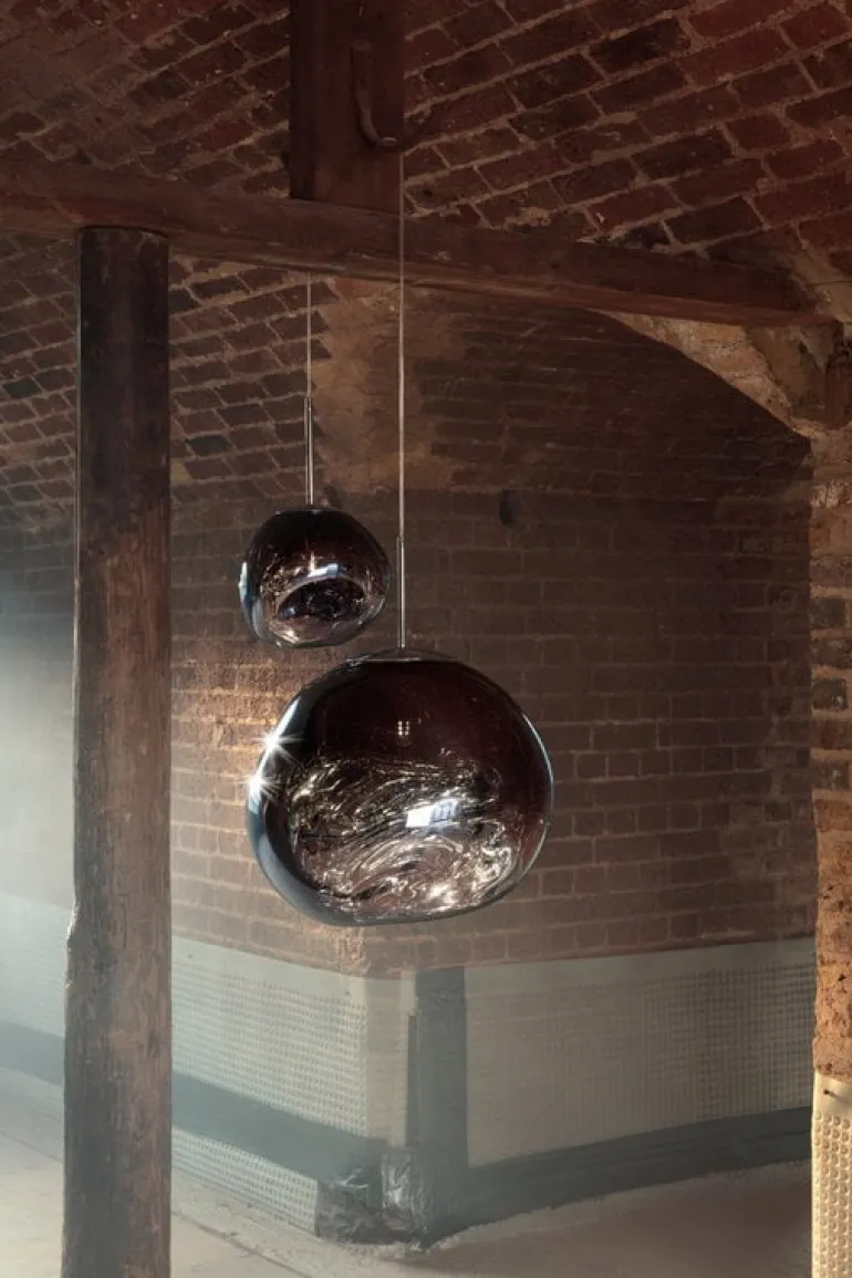 Tom Dixons fascinerande Melt-pendellampa designades i samarbete med det svenska designkollektivet Front. När den är avstängd har Melt en glänsande spegelglans och den ojämna ytan reflekterar ljuset på det mest spännande sättet. Först när den är påslagen eller i fullt dagsljus blir pendeln genomskinlig och skapar en illusion av hett smältande glas. En grupp av Melt-lampor är en riktig showstopper, men även en enda pendel fungerar som en fängslande inredningsdetalj.