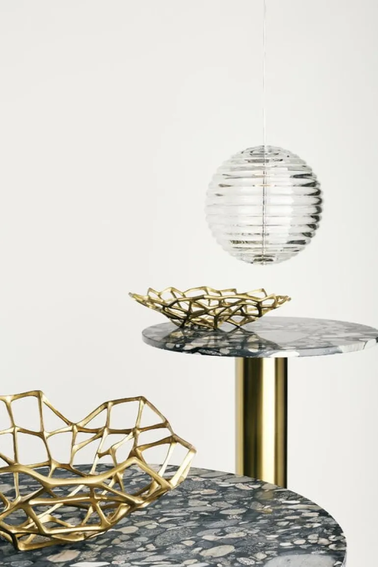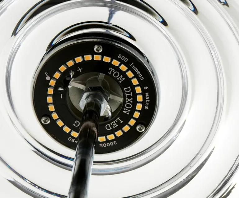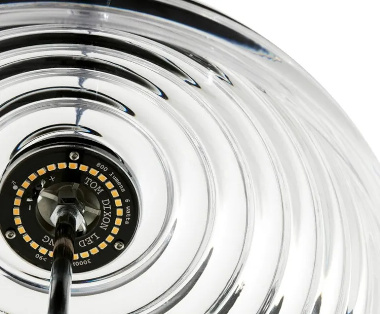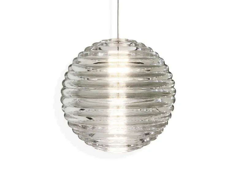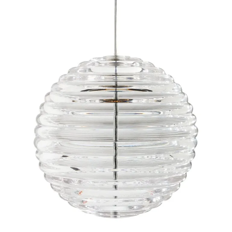 Tom Dixons pendellampa Press Sphere påminner om både bojar och leksaksbollar. Den runda taklampans yta omges av ett böjt mönster som skapar vackra randiga reflektioner när ljuset är tänd. Den vackert svävande, skulpterade pendellampan passar perfekt i både hemmet och offentliga miljöer.