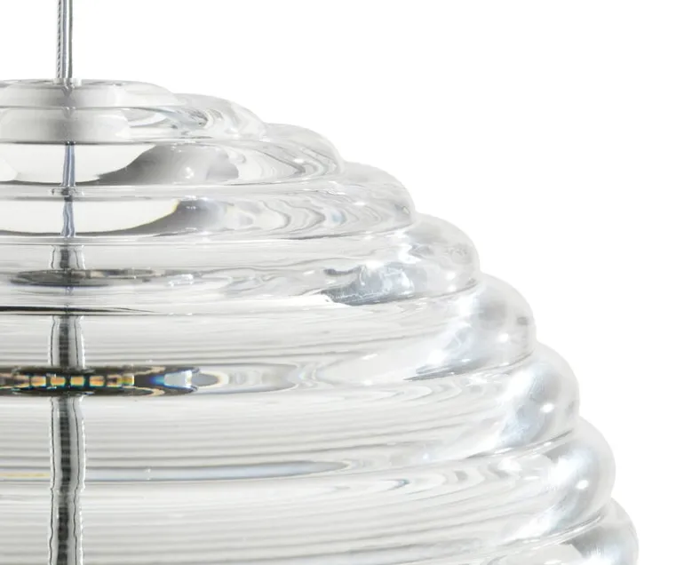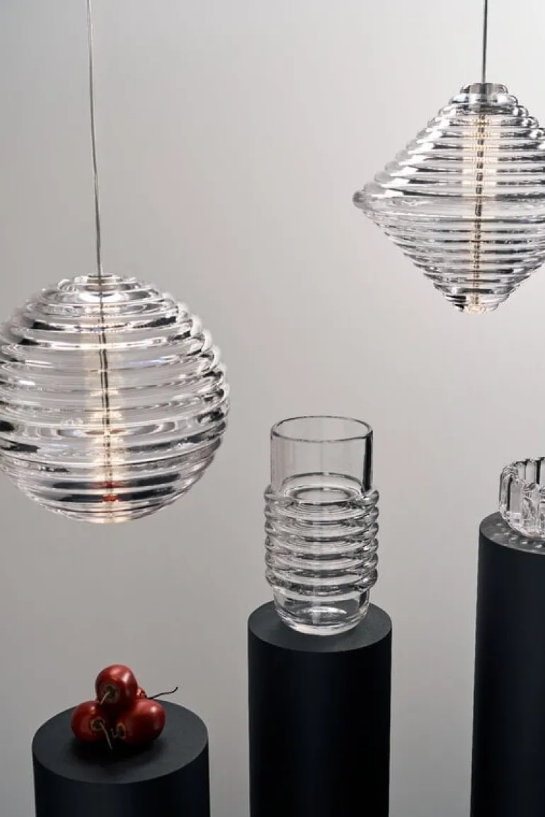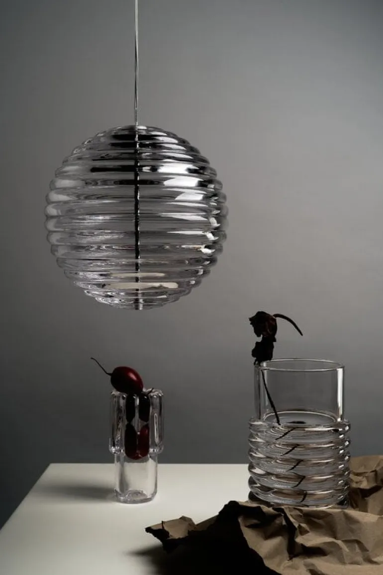 Pendellampan Press Sphere är tillverkad av smält glas som sedan pressats in i två- eller tredelade järnformar. Resultatet är Press pendellamps unika siluett: både mjuk och stark på samma gång. På grund av tillverkningsprocessen kan små bubblor uppstå, vilket gör varje exemplar unikt och fascinerande.