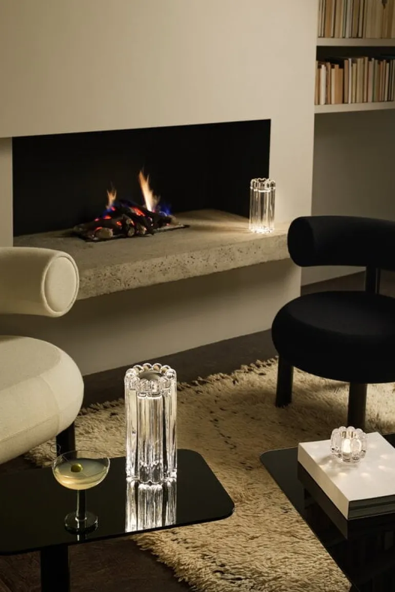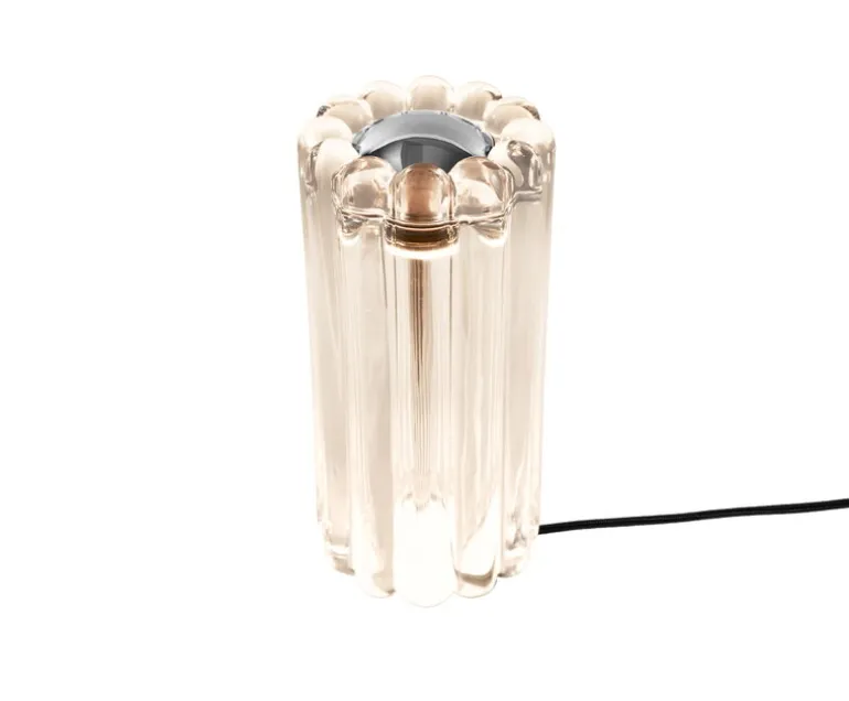 Bordslampan Press från Tom Dixon påminner om formen hos sjömärken och barnleksaker. Den ger en spännande tolkning av runda former, med en yta som har ett böjt mönster som skapar vackra randiga reflektioner runtomkring när lampan är tänd. Den multifunktionella Press ger ett stämningsfullt sken på nattduksbordet eller i vardagsrummet, men kan även användas utomhus.