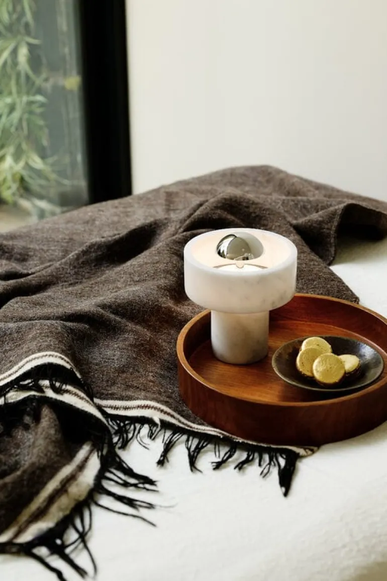 Tom Dixons bärbara bordslampa Stone är en modern marmorlampa som fångar blicken med sitt tidlösa, eleganta material och sina silverfärgade detaljer. Ljuset lyser mjukt genom marmoringen och ger en varm ton till dess unika, naturliga ådringsmönster. Bordslampan Stone skapar en trivsam atmosfär och ger en lyxig touch till alla miljöer, exempelvis på vardagsrumsbordet, fönsterbrädan eller nattduksbordet. Och när det behövs är den sladdlösa lampan enkel att lyfta upp och lysa upp ett matbord eller ett cafébord.