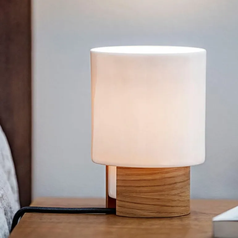 Tonfisk Designs Ilta-bordslampa kombinerar keramik med trä på ett enkelt, men samtidigt fascinerande sätt. Armaturen i porslin designades av Brian Keaney och har en bas av ek eller valnöt, som inte bara fungerar som bas, utan även ger lampan sin varma karaktär. Ilta-bordslampan avger ett mjukt och behagligt sken som är perfekt för att skapa ett omgivande ljus vid nattduksbordet eller fönsterbrädan i vardagsrummet.