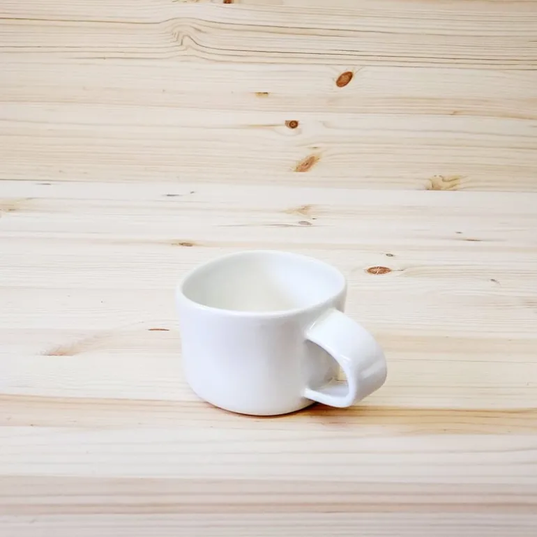 Tonfisk Designs cappucinokopp Touch har en charmerande, asymmetrisk och organisk form inspirerad av det finska vinterlandskapet och snödrivorna. Kaffekoppen görs i porslin där varje individuell kopp gjuts till en rund form och därefter formpressas till sin ovanliga form för hand. Tack vare tillverkningsprocessen är varje kopp unik – som kollektionens namn antyder har den en mänsklig touch. Cappucinokoppen tål att diskas i diskmaskin.
