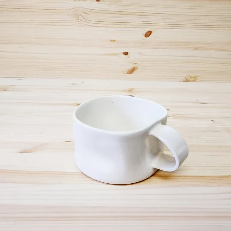 Tonfisk Designs lattemugg Touch har en charmerande, asymmetrisk och organisk form inspirerad av det finska vinterlandskapet och snödrivorna. Kaffekoppen görs i porslin där varje individuell kopp gjuts till en rund form och därefter formpressas till sin ovanliga form för hand. Tack vare tillverkningsprocessen är varje kopp unik – som kollektionens namn antyder har den en mänsklig touch. Lattemuggen tål diskmaskin.