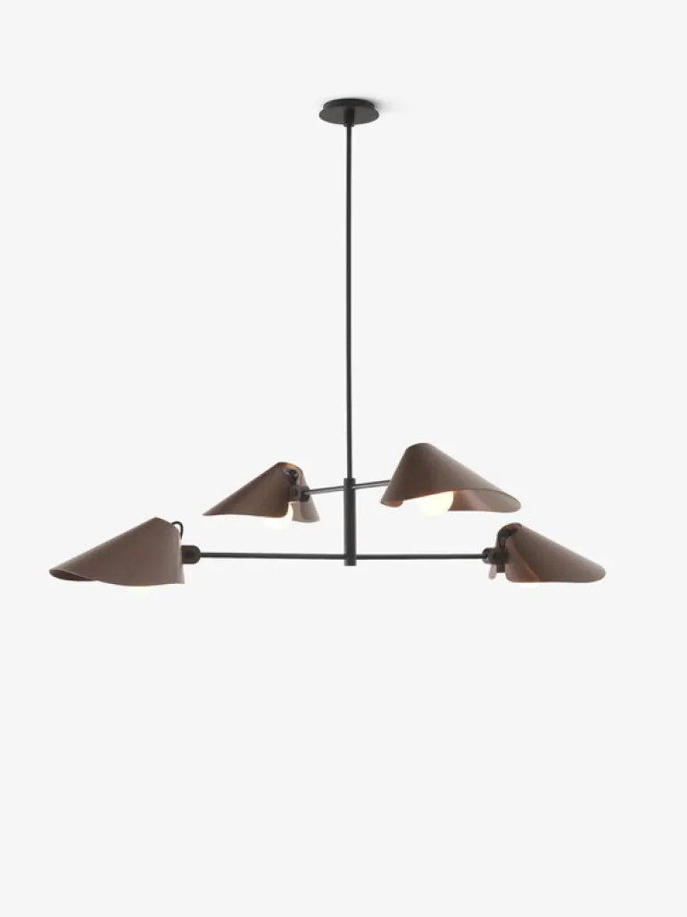&Traditions Bonnet SC92-kronljus utstrålar enkel elegans. Den moderna ljuskronan är designad av Space Copenhagen och får sin karaktär från de eleganta, böjda aluminiumskärmarna som kan roteras upp till 180 grader. Detta gör att ljuset kan riktas med extrem precision uppåt, nedåt eller någonstans däremellan, beroende på behov, utrymme och stämning. Tack vare sin mångsidighet är den slående och skulpterade Bonnet-armaturen perfekt lämpad att placeras ovanför både matbord och sittgrupper.