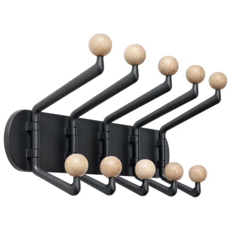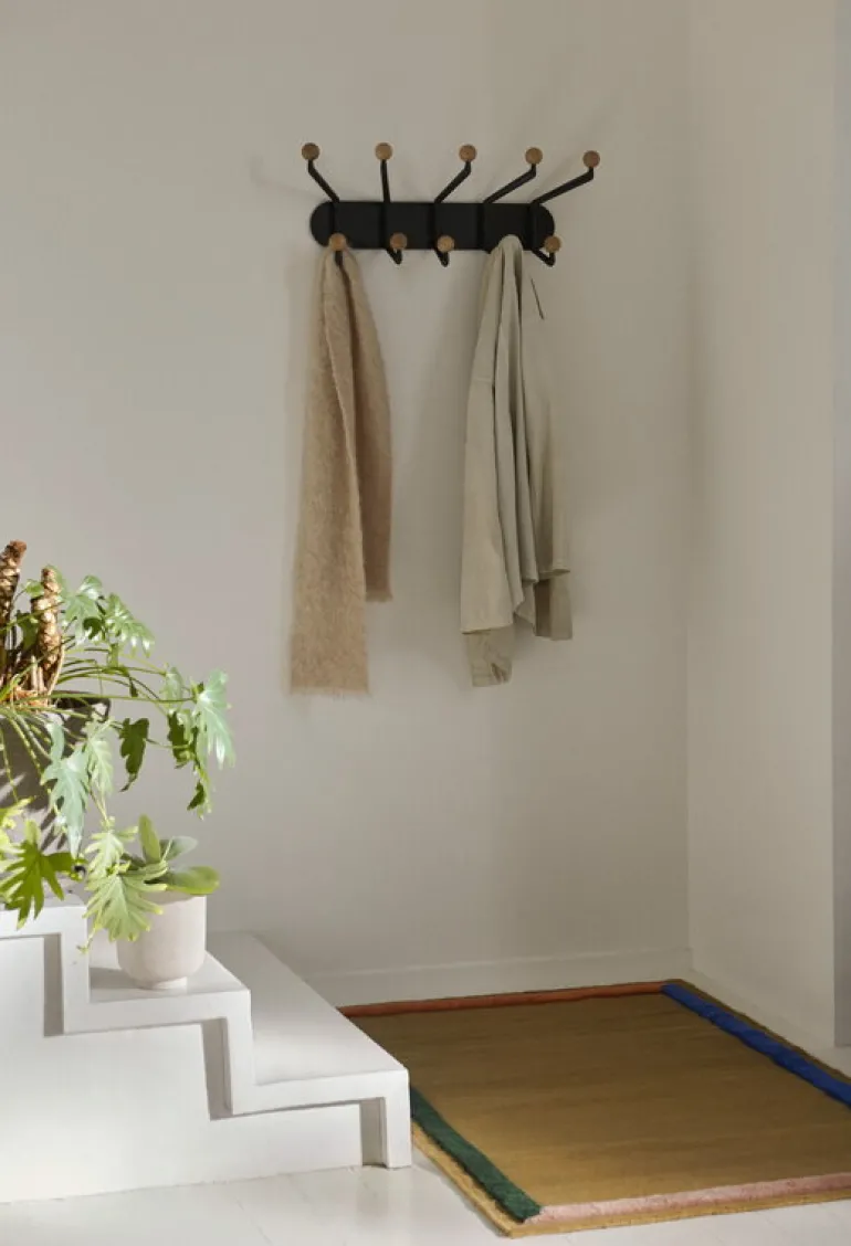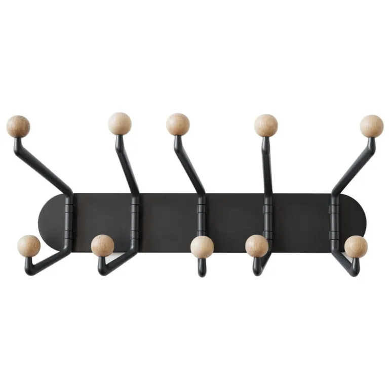 Väggkroken Capture SC76 från &Tradition, designad av Space Copenhagen, är en multifunktionell krok med tio armar som kan användas i badrummet eller köket som en handdukshängare, eller i hallen som en klädhängare. Metallkomponenterna i Capture väggkrok är tillverkade av pulverlackerat aluminium, och de runda knopparna är gjorda av massivt trä. De tio roterande armarna gör Capture-kroken till en mångsidig och justerbar förvaringslösning för alla utrymmen.