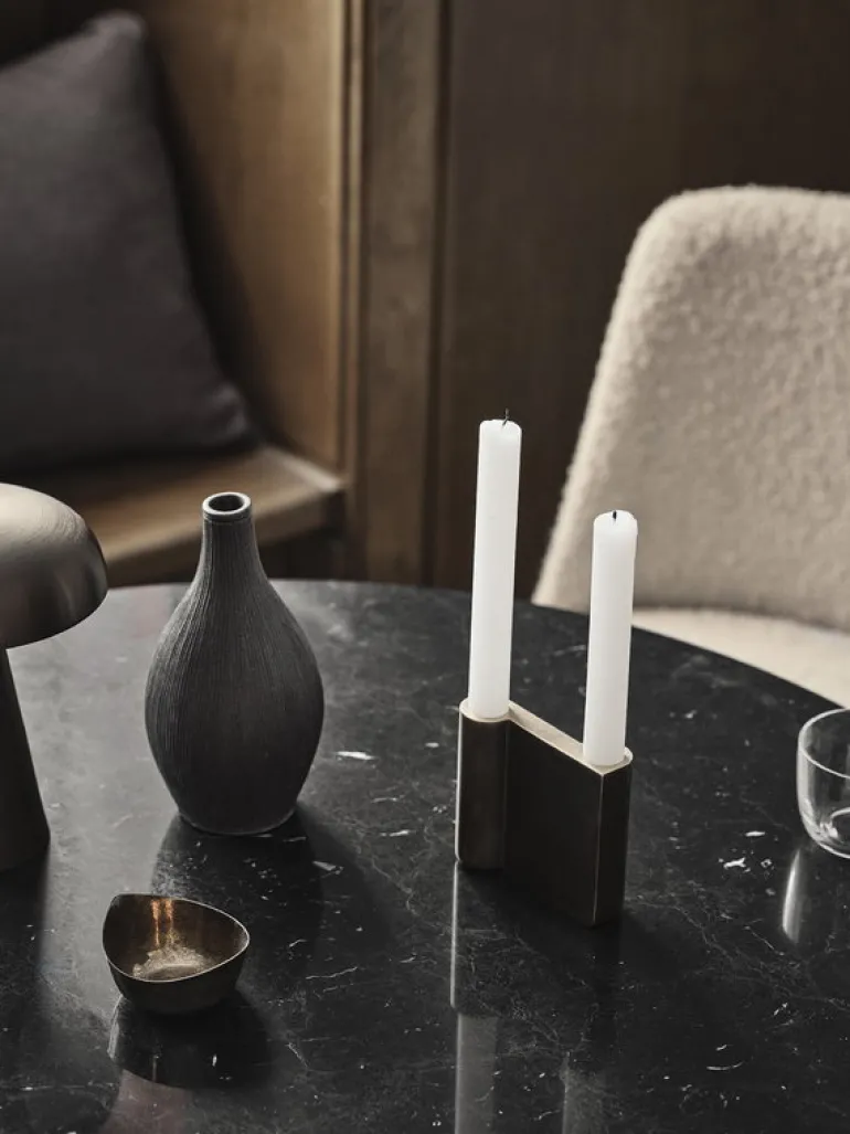 &Traditions Collect ljusstake ger en skulpterad och stilig plats för två långa ljus. Ljusstaken är tillverkad av gjuten mässing med en bronsfinish. Dess ovansida har polerats för att skapa en glansig mässingsyta som kommer att få en vacker patina med tiden.