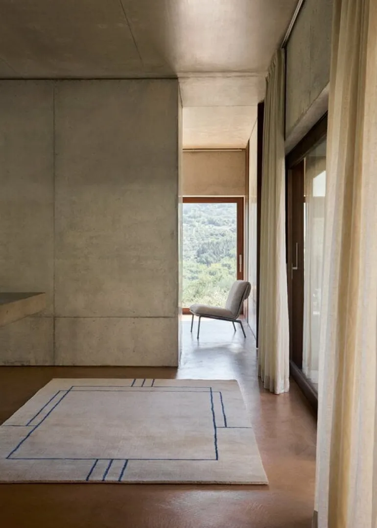 Mattan Cruise AP23 från &Tradition är vävd av ull, bambusilke och viskos, vilket resulterar i en mjuk och tät ullmatta med en svag glans och en lyxig, sammetliknande känsla. Cruisemattan har en enkel men dynamisk design med grafiska linjer och dess färgpalett har inspirerats av resor till avlägsna platser.