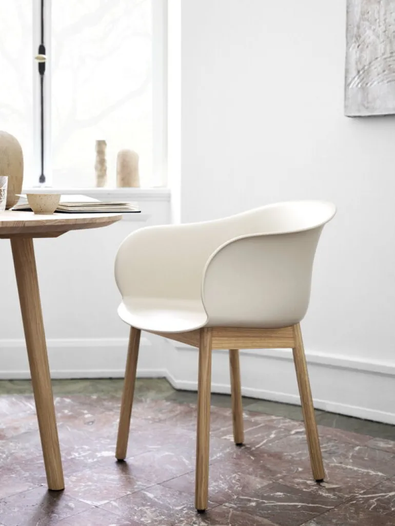 Elefy stol från &Tradition har inspirerats av elefanter, vilket märks på den runda formen och det roliga namnet. Den generösa sitsen vilar på stadiga ben. Armstöden som är mjukt böjda påminner om elefantens öron. De fina stolarna har utformats med komfort i åtanke: formgivaren Jaime Hayón ville skapa en stol som skulle omfamna den sittande personen från alla håll och skapa en mysig känsla av värme och välbefinnande. Stolen Elefy utformades för att passa i olika typer av rum. Den passar extra bra som stol vid ett matbord eller i ett konferensrum.