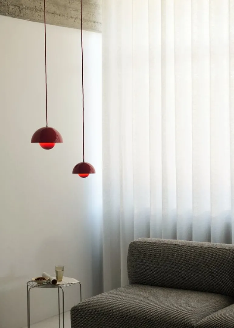 &Traditions Flowerpot VP1-pendellampa är en designklassiker från 1968 som skapades av Verner Panton. Den glada, runda lampan är inspirerad av fred, kärlek och flower power, och den blev en riktig designikon strax efter lanseringen. Flowerpot VP1:s silhuett är skapad av två hemisfärer som låter ljuset reflekteras på ett mjukt och trivsamt sätt. Tack vare sin enkla, kompakta design med en diameter på 23 cm passar Flowerpot i hemmets alla rum. Lampan är tillgänglig i både klara och mer diskreta färger, med blank eller matt finish.