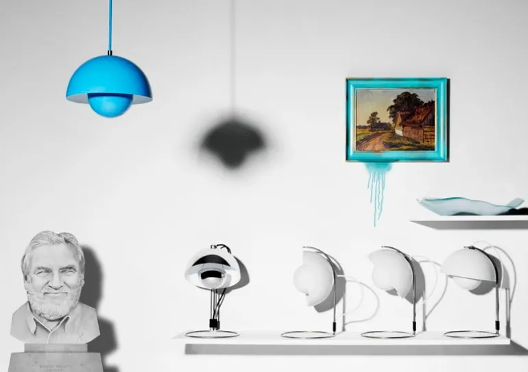 &Traditions bordslampa Flowerpot VP4 är en designklassiker från 1969, som skapades av Verner Panton. Lampan, som utstrålar både ljus och glädje, har hämtat inspiration från fred, kärlek och Flower Power – och efter lanseringen kom den snart att bli en riktig designikon. Flowerpots siluett är skapad av två hemisfärer, som låter ljuset reflekteras neråt på ett mjukt och trivsamt sätt. Bordslampan Flowerpot VP4 står på en rund fot av böjd metall. Flowerpot blir till ett frapperande blickfång i vardagsrummet, eller använd den som stämningsfull ljuskälla på sängbordet.
