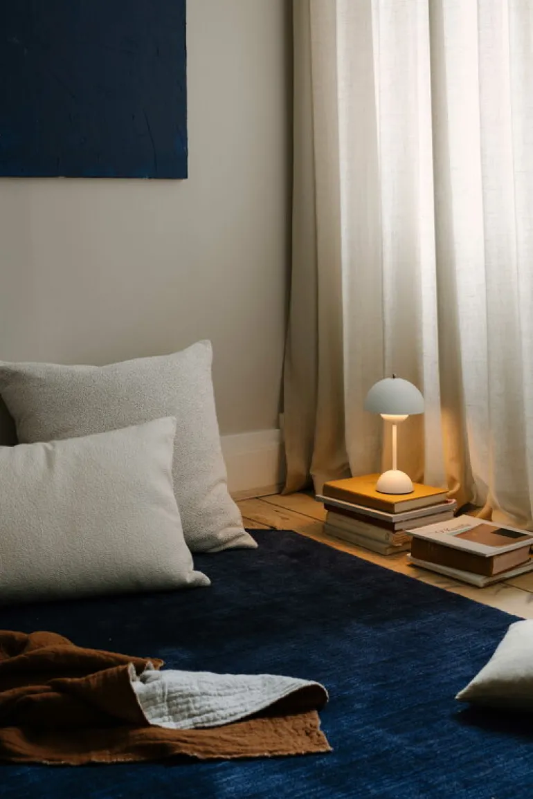 Bärbara Flowerpot VP9, från &Tradition, är en sladdlös version av den ikoniska bordslampan Flowerpot, som designats av Verner Panton. Lampan Flowerpot, som utstrålar både ljus och glädje, har hämtat inspiration från 60-talets era av fred, kärlek och Flower Power – och efter lanseringen kom den snart att bli en riktig designikon. Lampans silhuett utgörs av två halvklot, som låter ljuset reflekteras neråt på ett mjukt och trivsamt sätt.