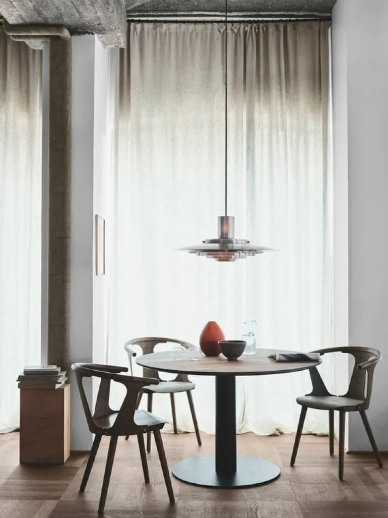 &Tradition’s matbord In Between är ett elegant tillskott till trämöbelkollektionen designad av Sami Kallio. Bordet In Between SK12 är resultatet av Kallios kärlek till skandinaviskt arv och träbearbetning, och är tillverkat av stark och karaktärsfull ek med traditionella tekniker som träsnideri. Ett robust metalliskt monopodiumben och en bred basplatta ger bordet en modern finish.