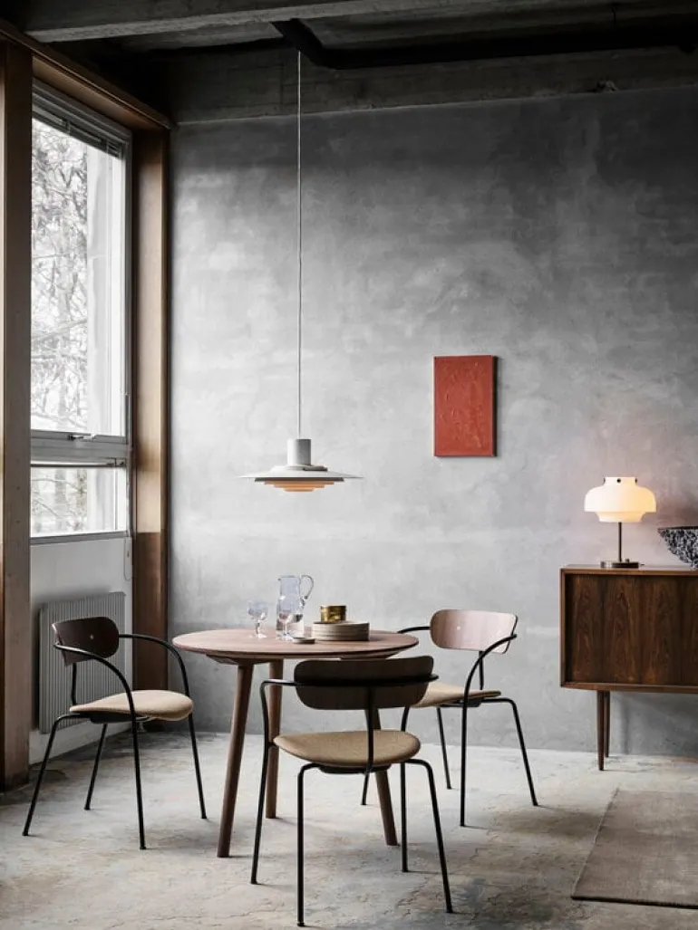 In Between-matbordet från &Tradition är ett elegant tillskott till möbelkollektionen i trä designad av Sami Kallio. Det runda bordet In Between SK3 upprepar de kurviga mönster och sluttande ben som syns på In Between-stolarna. Tack vare formgivaren Kallios passion för det skandinaviska arvet och träarbete tillverkas bordet In Between i slitstark ek med karaktär, med traditionella metoder som svarvning. Dess lätta, trebenta design och avtagbara ben ger bordet en modern finish och gör att det kan transporteras och förvaras platt.