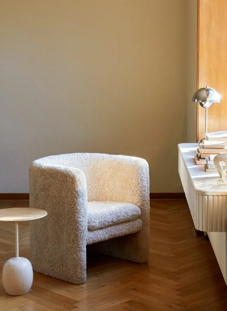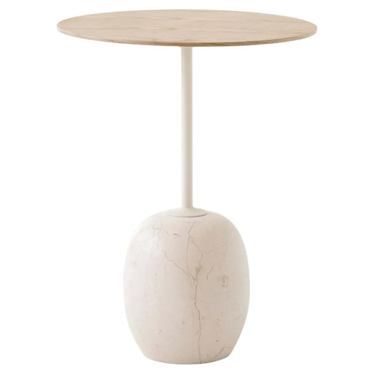 &Tradition’s Lato LN8, designad av Luca Nichetto 2018, är ett skulpturalt bord som kombinerar en ovalformad ekfanertop med en lyxig marmorbotten. Enligt Nichetto kom idén till Lato-bordet från formen på en klubba vänd upp och ner – det smala stålbens och ovalformade marmorbotten liknar faktiskt en klubba. Uppvuxen på hantverksön Murano i Venedig är Nichetto van vid att leka med kreativa idéer och utforska gränserna för olika material. Trots sin lekfulla inspirationskälla är Lato-bordets slutliga utseende lugnt, förfinat och tidlöst. Para ihop det med vardagsrummets soffgrupp eller använd det som ett dekorativt sidobord i vilket rum som helst i huset.