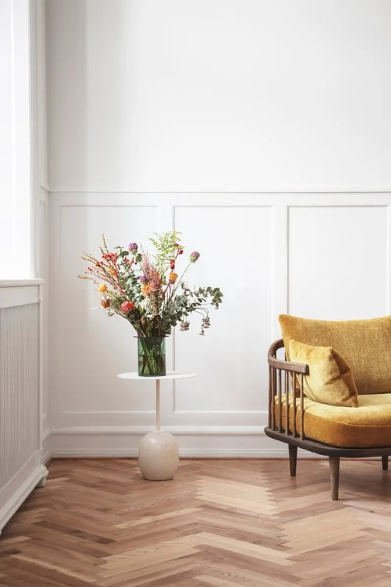 &Traditions Lato LN8 designades av Luca Nichetto 2018, och är ett skulpturalt bord som kombinerar en rund bordsskiva i stål med ett lyxigt underrede i marmor. Enligt Nichetto kom idén till bordet Lato från formen av en uppochnedvänd klubba – det smala stålbenet och den ovala marmorbasen påminner faktiskt om en klubba. Nichetto växte upp på konstnärsön Murano i Venedig och är därför van vid att leka med olika kreativa idéer och att utforska gränserna för olika material. Trots den lekfulla inspirationskällan till Lato är det slutliga resultatet ett lugnt, sofistikerat och tidlöst bord. Kombinera det med vardagsrummets soffgrupp eller använd det som ett dekorativt sidobord i vilket rum som helst.