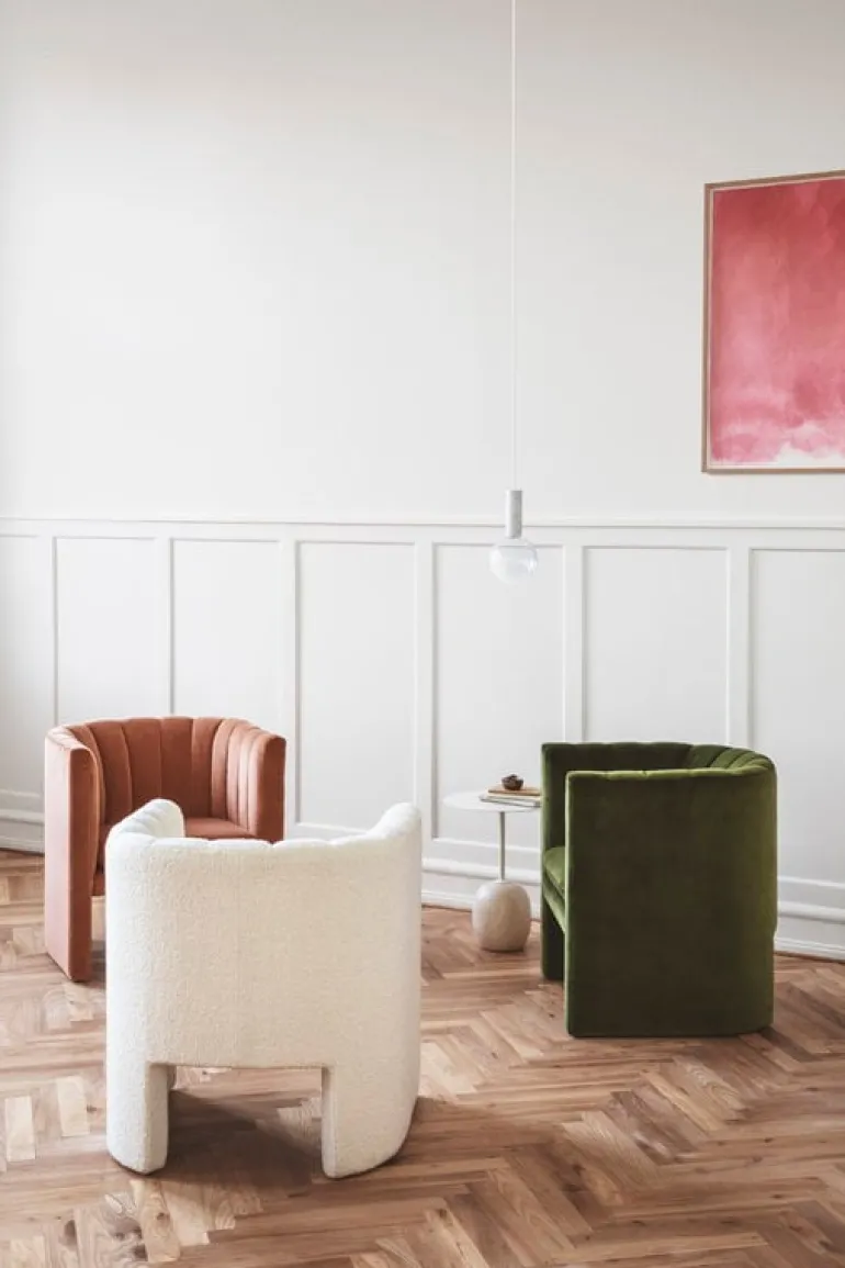 Designstudion Space Copenhagen designade Loafer-kollektionen för lobbyn i Köpenhamns legendariska SAS Royal Hotel som Arne Jacobsen designat. Space Copenhagens mål var att skapa en möbel som skulle skapa en intim känsla i det stora, öppna utrymmet. Den eleganta kollektionen kompletterar hotellets interiör på ett härligt sätt, och dess smidiga, funktionella design är även lämplig för privata hem.
