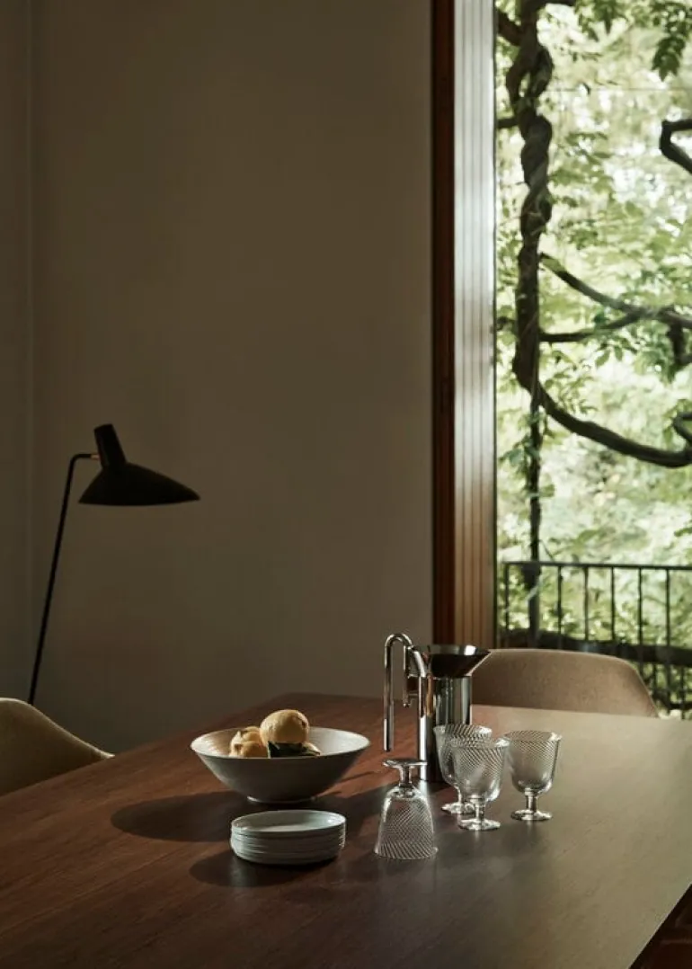 Karaffen Momento från &Tradition är resultatet av flera års grundlig forskning och testning. Karaffen, som har formgivits av den spanske konstnären Jaime Hayón, är inte bara lekfull och Hayónesk till formen, utan är också väldigt enkel och bekväm att använda. Vem har inte haft en karaff som inte går att använda utan att spilla lite varje gång? Den här spillfria karaffen rymmer 1 liter vatten eller vad du nu väljer att servera.