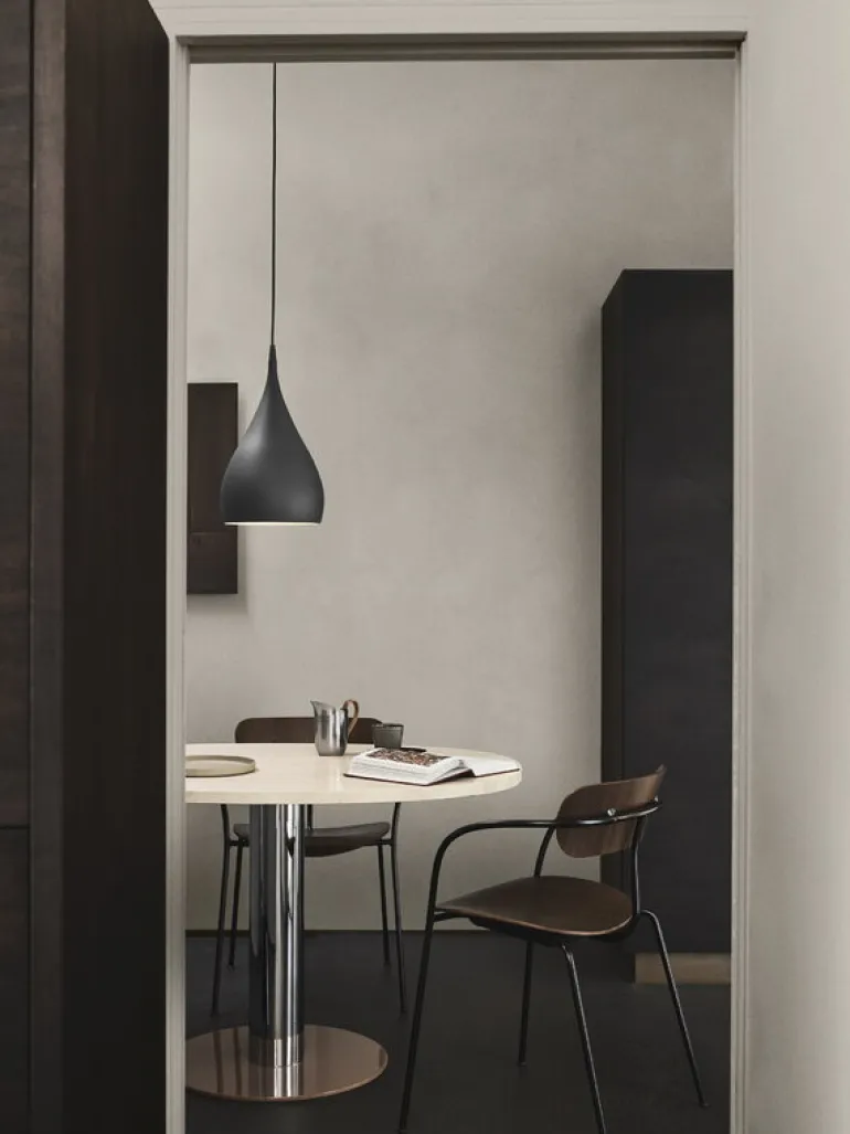 Pendellampan Spinning BH2 från &Tradition är formgiven av den brittiske designern Benjamin Hubert. Namnet Spinning refererar till processen att trycksvarva metall och till lampans silhuett – skärmens form liknar en leksakssnurra. Den sofistikerade pendellampan skapar ett mjukt sken i alla rum, antingen på egen hand eller i grupp. Pendellampan Spinning har en enkel, rundad form som även gör den till ett utmärkt val ovanför matbordet.