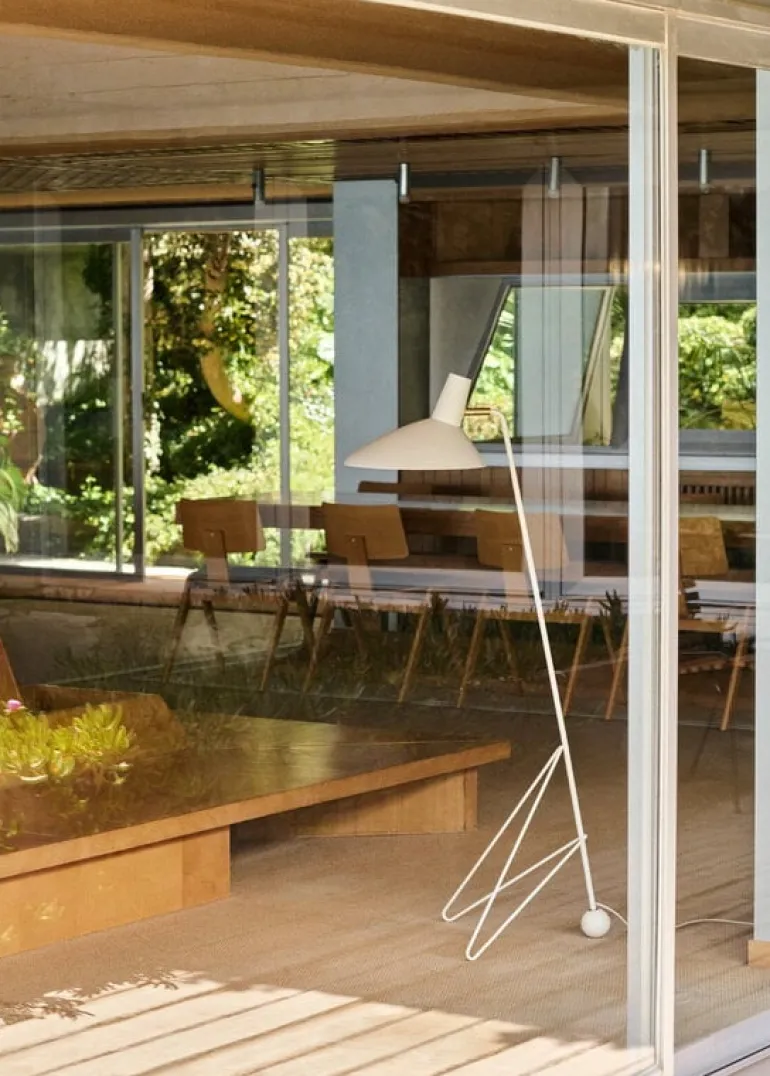 Golvlampan Tripod HM8 från &Tradition är en bortglömd pärla som har hämtats fram ur arkiven hos den danska designduon Hvidt & Mølgaard. Redan 1953 designades golvlampan Tripod, men det var först 2020 som den sattes i produktion, då &Tradition lade till lampan i sin kollektion. Golvlampan Tripod, som är tillverkad i aluminium och stål, har en vacker minimalistisk design som kryddats med intressanta detaljer, som den bollformade foten, den geometriska stödstrukturen och de snygga mässingsdetaljerna.