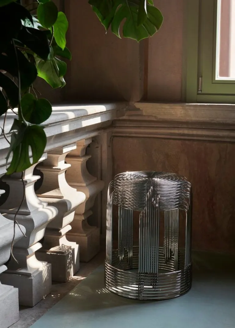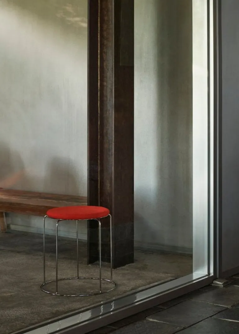 &Traditions Wire Stool VP11 ger ett charmigt intryck med sin eleganta enkelhet och glänsande metallyta. Wire Stool, skapad 1981 av Verner Panton, är tillverkad i spegelpolerat stål som gör att pallen känns tålig och luftig på samma gång. Den praktiska sitsen gör sig lika bra i hemmets alla rum, oavsett om du använder den som ett välkomnande inslag i hallen eller som extra sittplats i vardagsrummet eller köket.