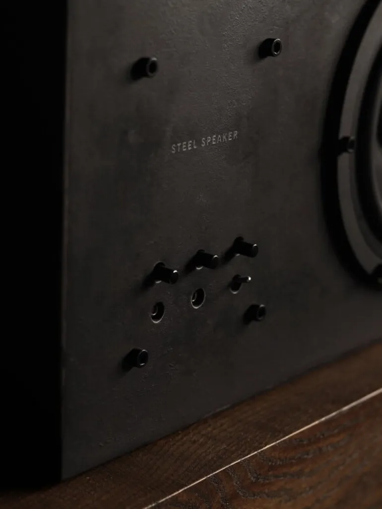 Transparents Steel Speaker gör ett djärvt uttalande med sin massiva närvaro och exceptionella ljudkvalitet. Trogen sitt namn är högtalaren tillverkad av stål av smeden Jonas Majors på ön Mörkö, söder om Stockholm.