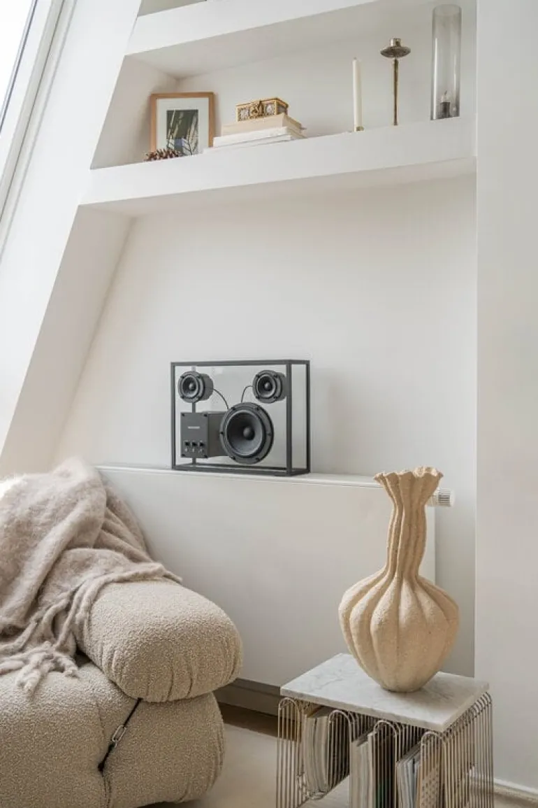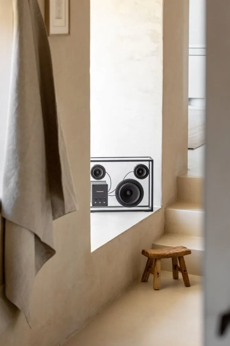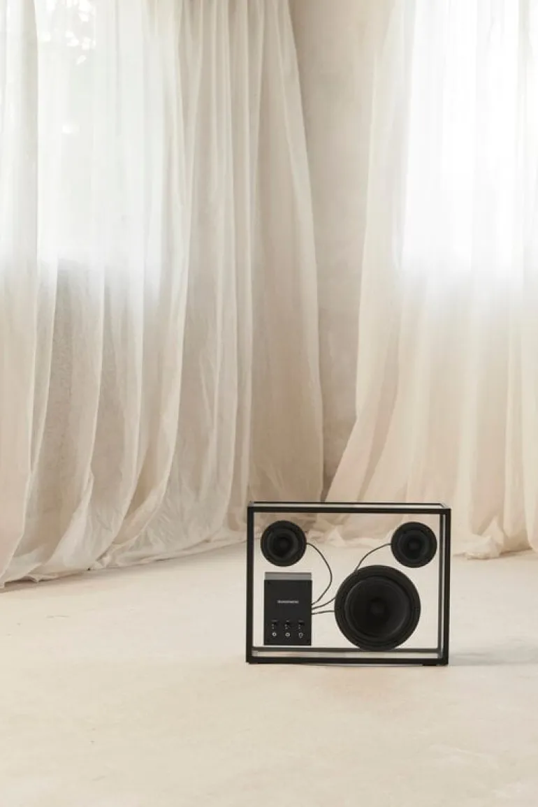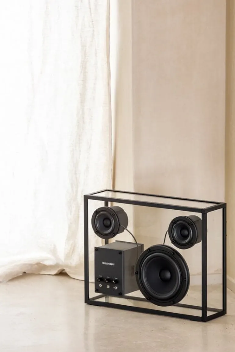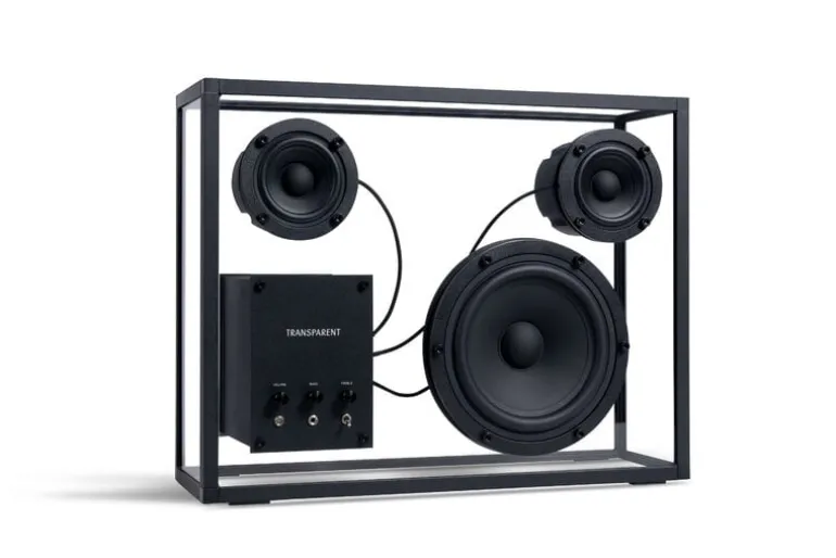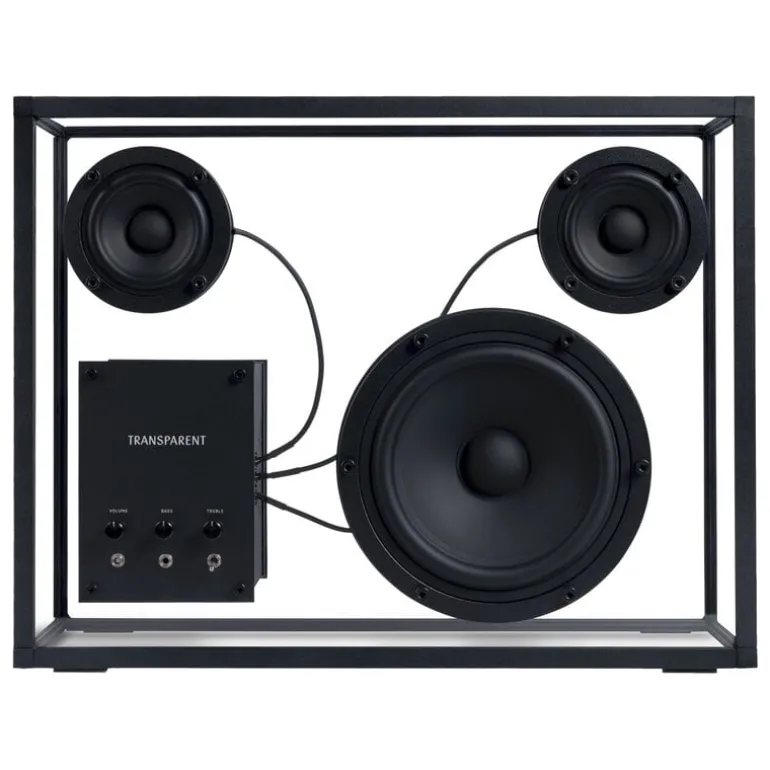 The Transparent Speaker är en fantastisk kombination av minimalistisk design och exceptionell ljudprestanda. Visuellt drar den blickarna till sig med sin transparenta kropp i härdat glas och aluminium, som avslöjar de interna komponenterna, inklusive högtalarna och strömkablarna. Akustiskt imponerar den med sitt kraftfulla ljud, som levereras av två 3-tums fullrange-element och en 6,5-tums woofer. Kombinationen ger ett balanserat ljudlandskap där djup bas, detaljerade mellanregister och klara diskanttoner smälter samman harmoniskt. Anpassningsbara ljudkontroller på frontpanelen låter dig justera volymen, basen och diskanten efter dina personliga preferenser.