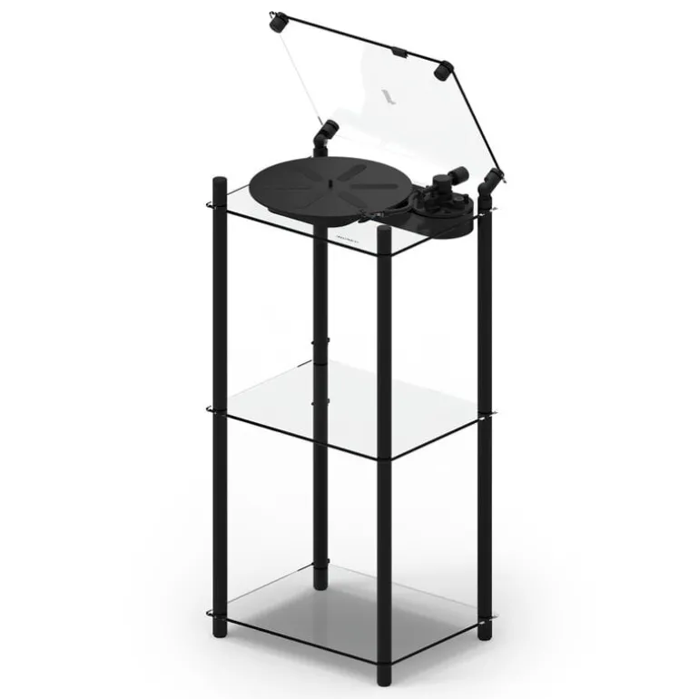 Transparent’s Turntable Stand tar din musikupplevelse till nästa nivå. Stället är designat för att passa perfekt till Transparent Turntable, och erbjuder även plats för upp till 140 vinylskivor – eller så kan du använda hyllorna för att visa upp andra föremål om du föredrar det! Det vackert minimalistiska, transparenta stället är tillverkat av aluminium och härdat glas, vilket gör det till ett elegant och stilrent tillskott i alla rum.