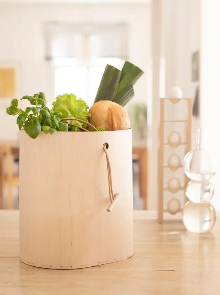 Korgen Round, som är tillverkad och designad av Tuulia Penttilä, är en unik och mångsidig plats för småförvaring. Korgen tillverkas utan lim, med metoden sadelhäftning, och den består av tunn björkplywood med en lekfull läderrem. Designens mjuka former och enkla yttre gör korgen utmärkt för både förvaring och dekoration i hemmet. Den lätta vikten gör även korgen smidig att ta med sig på språng.