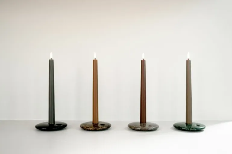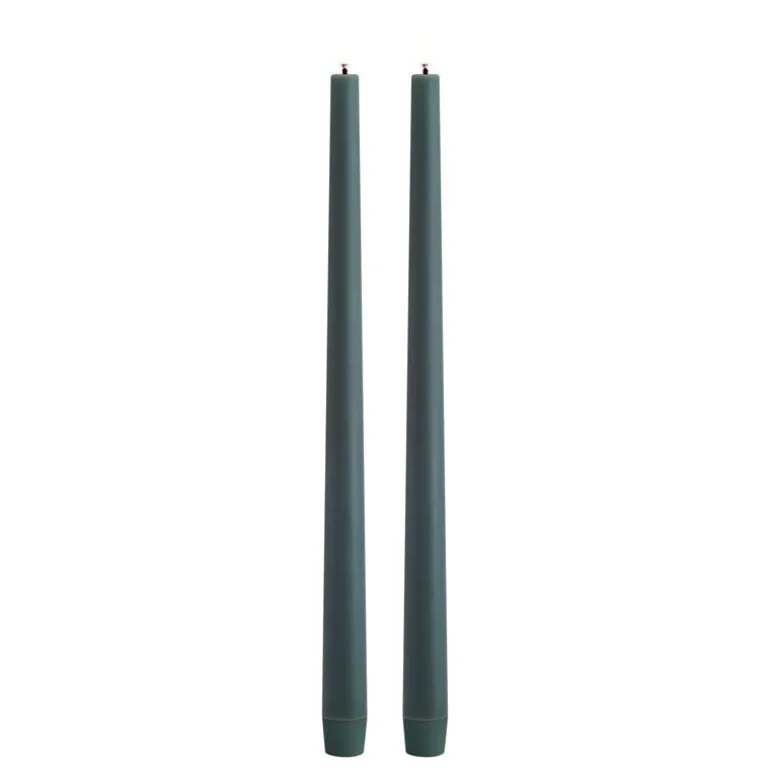 De avsmalnande LED-ljusen från Uyuni Lighting är ett säkert sätt att skapa en varm och inbjudande atmosfär i ditt hem – en sådan som endast det mjukt flimrande ljuset från tända ljus kan skapa. LED-ljusen är övertygande autentiska. De är belagda med äkta stearin och utrustade med Uyunis patenterade 3D-låga som imiterar den fladdrande lågan på ett vanligt ljus, och lyser mjukt med ett varmt och vitt sken.