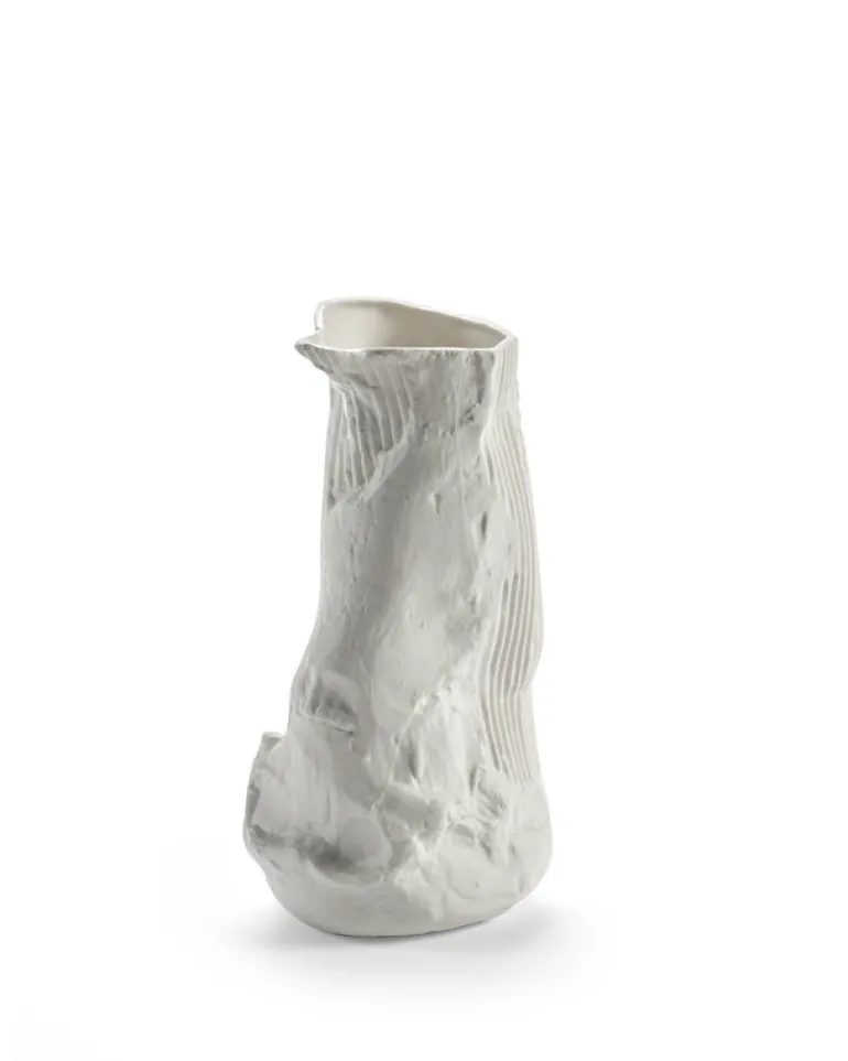 Kannan Artifacts III från valerie_objects fångar essensen av rå, organisk skönhet. Porslinskannan är minimalistisk till sin kärna och har en glansig glaserad insida, medan utsidan är medvetet grov och ofin. Kannan är perfekt för att lyfta upp vilken dukning som helst, och fungerar även som en vacker vas, antingen med en färgglad blomsterbukett eller med fina kvistar.