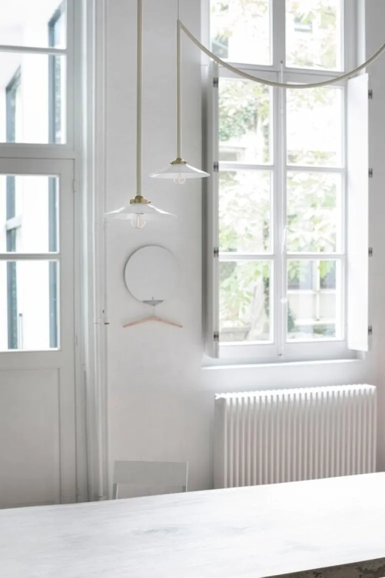 Ceiling Lamp från valerie objects är en innovativ armatur med en simplistisk men definierad design skapad av Muller Van Severen. Ceiling Lamp inspirerades av en lampa som Fien Muller och Hannes Van Severen designade för sitt hem och består av ett simpelt metallrör och en väldigt klassiskt formad glasskärm. Den minimalistiska armaturens kärna ligger i hur extremt simpelt metallröret är, som att någon bara gjort ett streck i luften med en krita. Detta tillför en lekfull känsla till det annars industriella utseendet hos armaturen, något som gör den fascinerande, distinkt och unik oavsett var den placeras. Genom åren har Hanging Lamp vuxit till en hel kollektion med distinkta armaturer som alla karaktäriseras av samma igenkännbara och minimalistiska uttryck.
