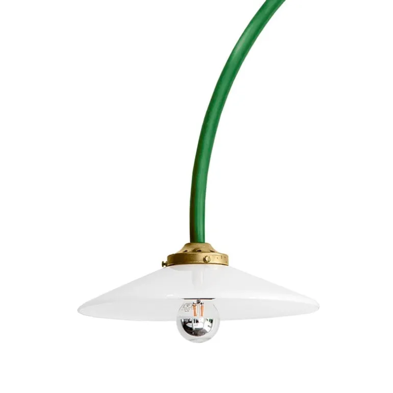 Hanging Lamp, formgiven av Muller Van Severen för valerie_objects, är en påfallande innovativ ljuskälla som kännetecknas av en modern och enkel design med ett unikt drag av lekfullhet. Hanging Lamp inspirerades av en lampa som Fien Muller och Hannes Van Severen designade för sitt hem och består av ett väggmonterat metallrör och en klassiskt formad glasskärm. Den minimalistiska armaturens kärna ligger i hur extremt simpelt metallröret är, som att någon bara gjort ett streck i luften med en krita. Detta tillför en vimsig känsla till det annars industriella utseendet hos lampan, något som gör den fascinerande, distinkt och unik oavsett var den placeras. Genom åren har Hanging Lamp vuxit till en hel kollektion med distinkta armaturer som alla karaktäriseras av samma igenkännbara och minimalistiska uttryck.
