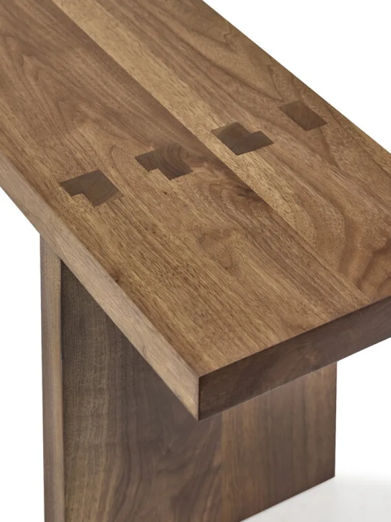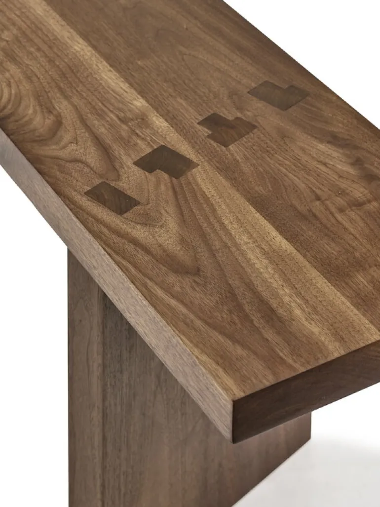 Bänken Solid från valerie_objects har fått namn och utseende från sin fascinerande fusion av form och funktion. Vid första anblick kan den långa bänken – som balanserar på tre eleganta ben – ge ett luftigt och viktlöst intryck, och därmed motsäga sitt eget namn. Men det är bara en slags optisk illusion, eftersom namnet faktiskt speglar det som bänken utger sig för att vara: Solid är tillverkad i valnöt och är så stabil att flera personer kan sitta på den, men om du vill kan du även använda den som sidobord. Bänken Solid har formgivits av den Berlinbaserade designstudion Atelier 365.