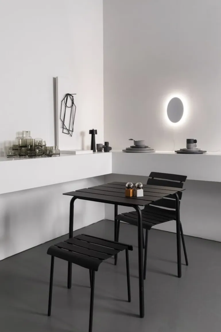 Med sina enkla, geometriska former skapar valerie objects vägglampa Tramonto en mjukt glänsande gloria på väggen. Vägglampan Tramonto, skapad av designduon Maria Scarpulla, har fått sitt namn efter det italienska ordet för solnedgång – och visst påminner glorian runt lampan om den glödande horisonten efter solnedgången.