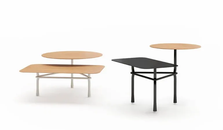 Bordet Tiers, från Viccarbe, är ett multifunktionellt sidobord som till exempel kan användas som soffbord, nattduksbord eller planteringsbord. Bordet Tiers, som är designat av Patricia Urquiola 2010, består av en stålram med bordsskivor i ek och MDF, som har olika form och höjd. Det uttrycksfulla, grafiskt minimalistiska bordet Tiers passar utmärkt både i hemmet och offentliga miljöer eller kontor.