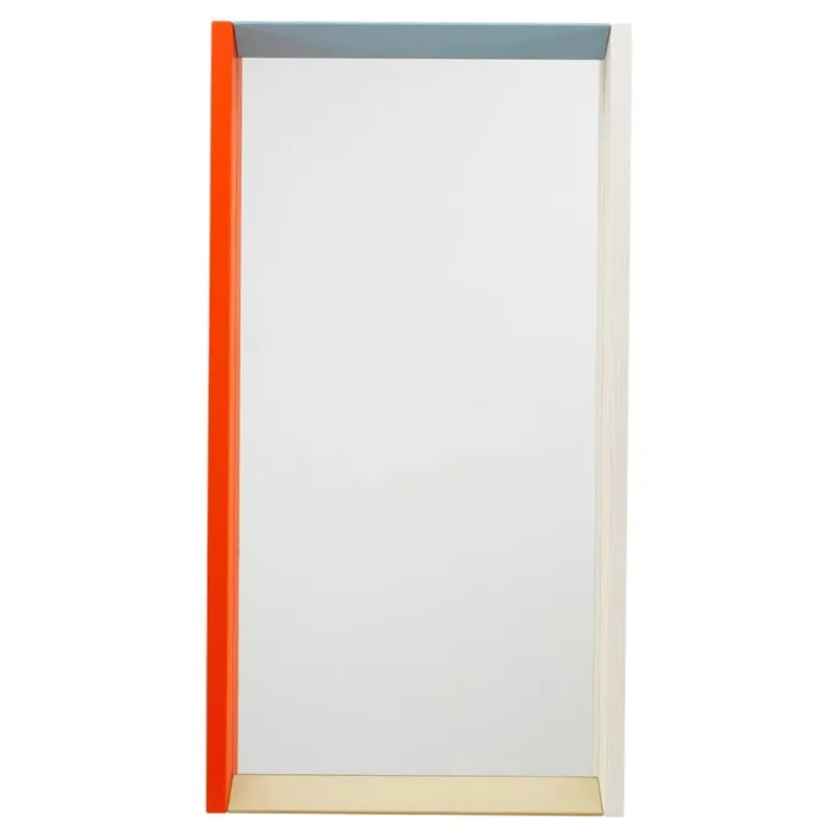 Vitras spegel Colour Frame ger ett fascinerande intryck med sin ohämmade användning av färg – varje sida av den rektangulära träramen är målad i olika nyanser. Ramen i askträ är dessutom tillräckligt djup för att kunna användas som hylla, där du kan förvara dina nycklar, solglasögon, läppbalsam och andra små viktiga föremål.