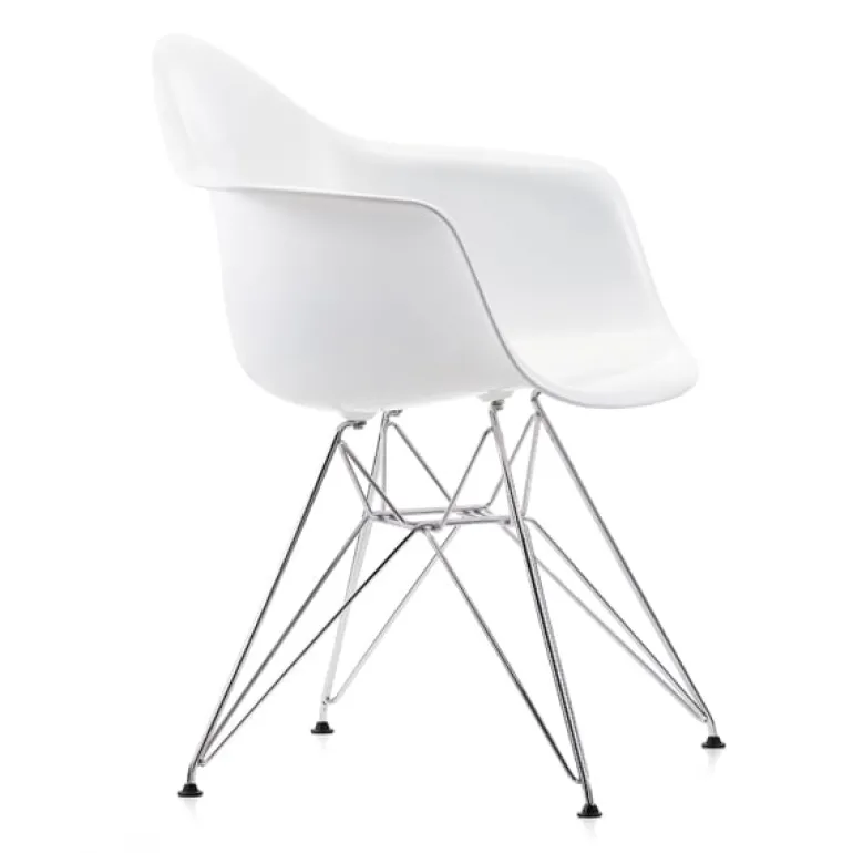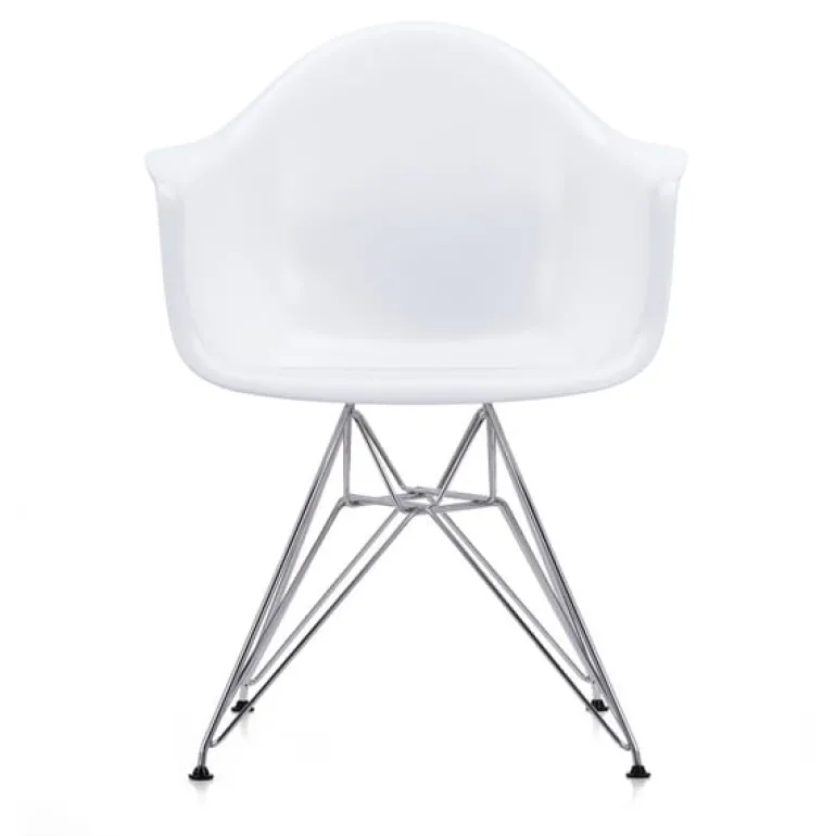 Vitras Eames DAR-stol är även känd som Eiffelstolen på grund av metallramens grafiska korsstruktur. Namnet DAR kommer från orden Dining Height Armchair Rod Base.
