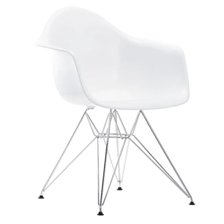 Vitras Eames DAR-fåtölj är även känd som Eiffelstolen på grund av metallramens grafiska korsstruktur. Namnet DAR kommer från orden Dining Height Armchair Rod Base.