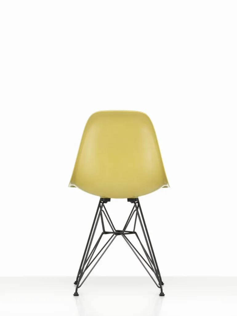 Vitras Eames DSR-stol i fiberglas kombinerar en spännande sits i fiberglas med grafiska, korsade metallben som gett stolen smeknamnet ”Eiffelstolen”. Namnet DSR kommer från orden Dining Height Side Chair Rod Base.