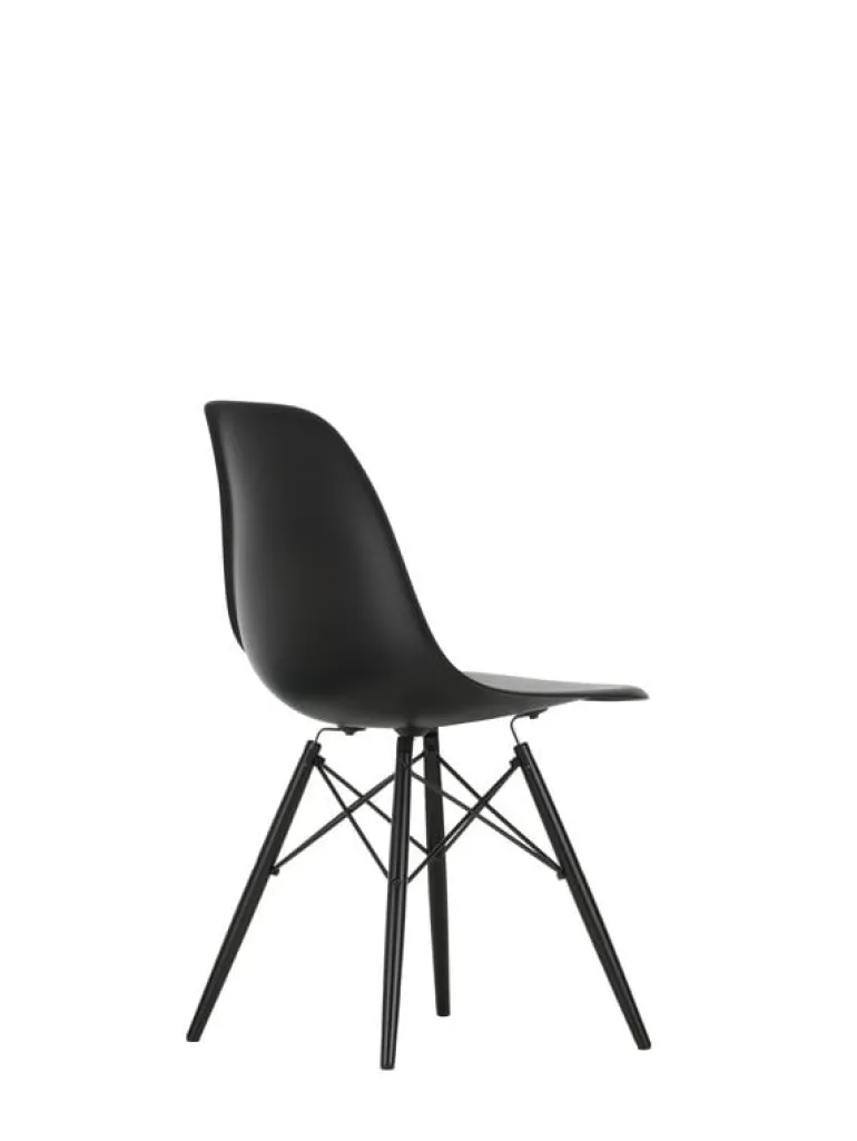 Vitras Eames DSW-stol består av en lätt sits i plast kombinerat med ben i lönnträ, som stöds av en stålram. Namnet DSW kommer från orden Dining Height Side Chair Wood Base.