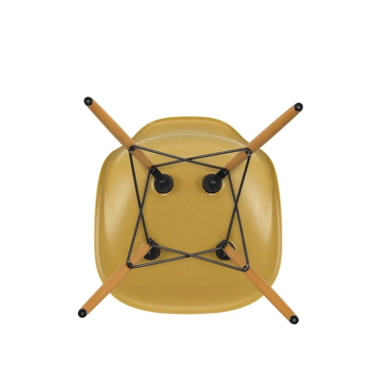 Vitras Eames DSW-stol kombinerar en spännande sits i fiberglas med ben i lönnträ, med stöd av en stålram. Namnet DSW kommer från orden Dining Height Side Chair Wood Base.