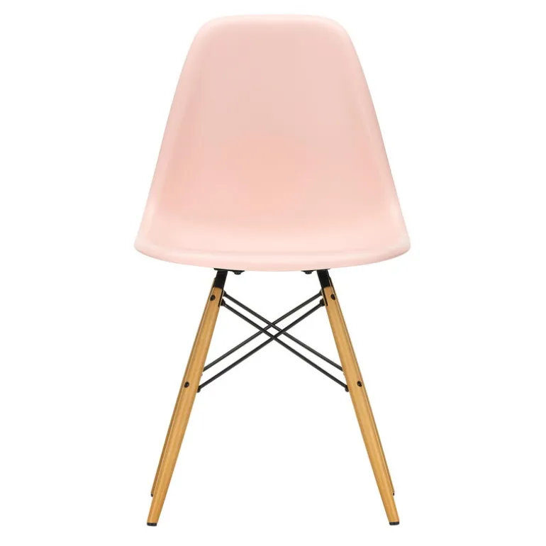 Vitras Eames DSW-stol består av en lätt sits i plast kombinerat med ben i lönnträ, som stöds av en stålram. Namnet DSW kommer från orden Dining Height Side Chair Wood Base.