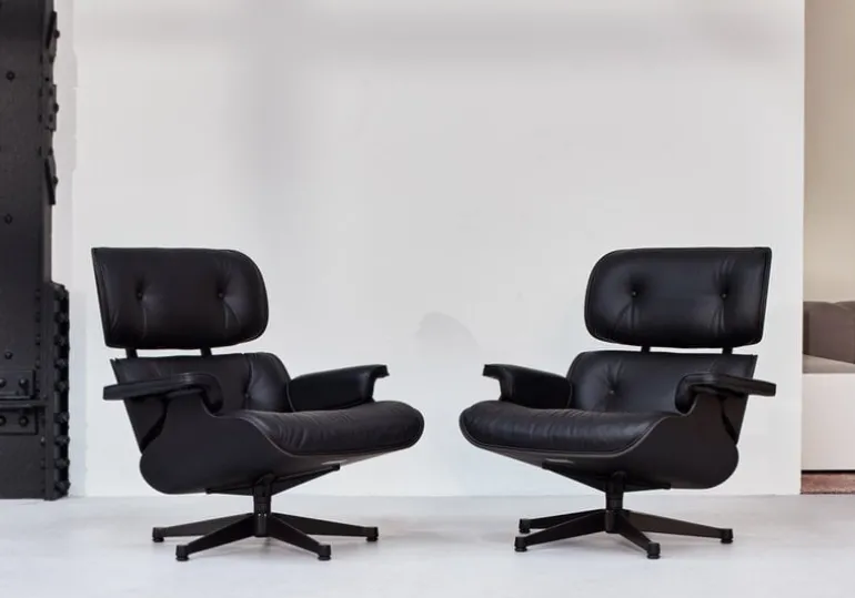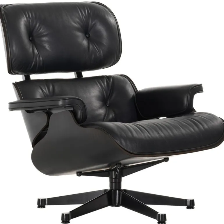 Vitra Eames fåtölj, klassisk storlek, svart ask – svart läder