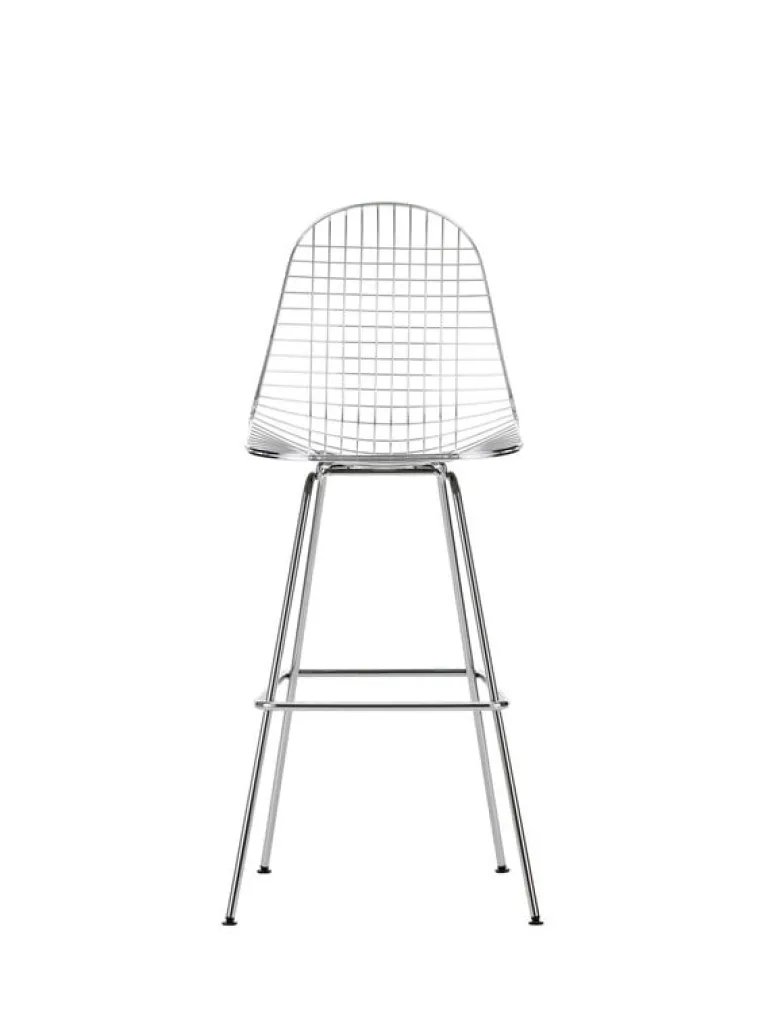 Wire Stool från Vitra är en barstol som är en vidareutveckling av Charles och Ray Eames klassiska stol i metall. Wire Stool har en trivsamt rundad sits som ger utmärkt stöd åt ryggen under långa middagar eller möten, och den fyrkantiga basen har fyra ben och en fotstöd som ger extra komfort. Den höga versionen av barstolen är designad för att passa till bord i ståhöjd.