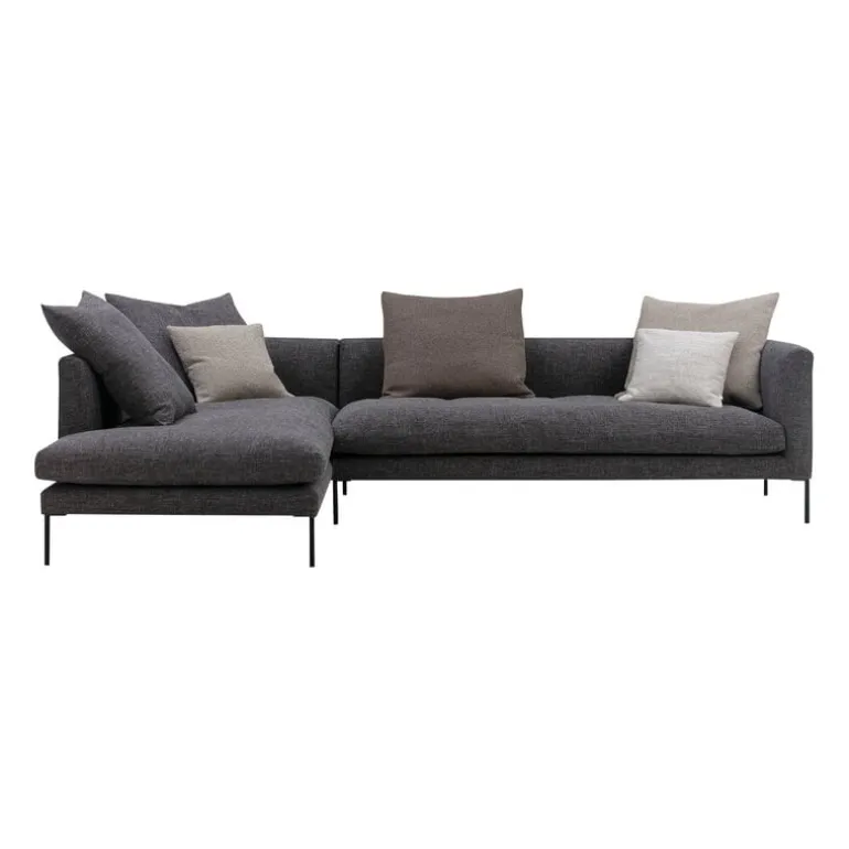 Soffan Blade består av moduler som kan sättas ihop för att skapa en effektfull möbel som även passar i större rum. Blade har försetts med en divan, som syns till vänster på produktbilden, men som finns på soffans högra sida sett ur den sittande användarens perspektiv. Soffan är klädd i ett tåligt Sasso-tyg.