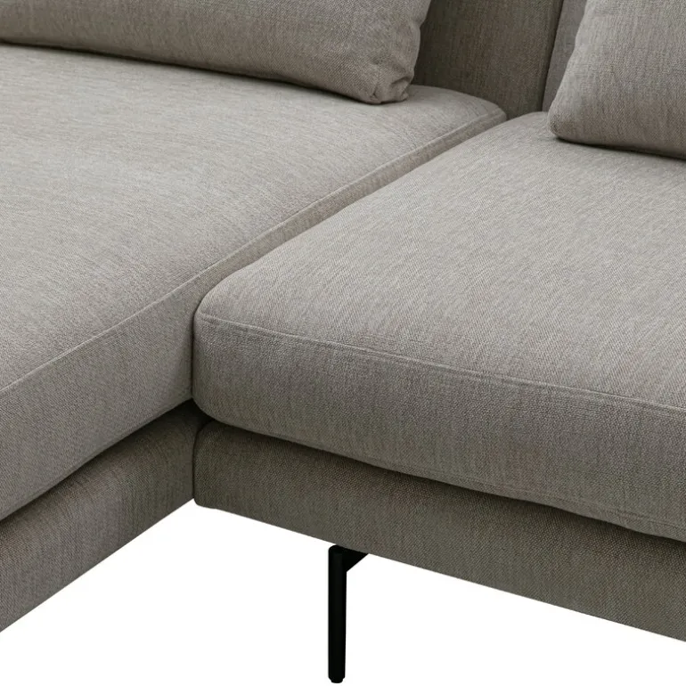 Wendelbos modulsoffa Edge V2 har en tidlöst modern design som passar i vardagsrum och med en rad olika stilar. Soffan ser inte bara iögonenfallande bekväm ut, utan är dessutom oerhört mångsidig: konstruktionen i moduler gör att Edge V2-sofforna blir väldigt anpassningsbara. Den här soffan har utrustats med en divan, som syns till vänster på produktbilden, vilket alltså blir på soffans högra sida sett från sittande läge. Soffans mjuka framtoning förstärks av den stilrena, ljusgrå klädseln och de smala benen av stål.