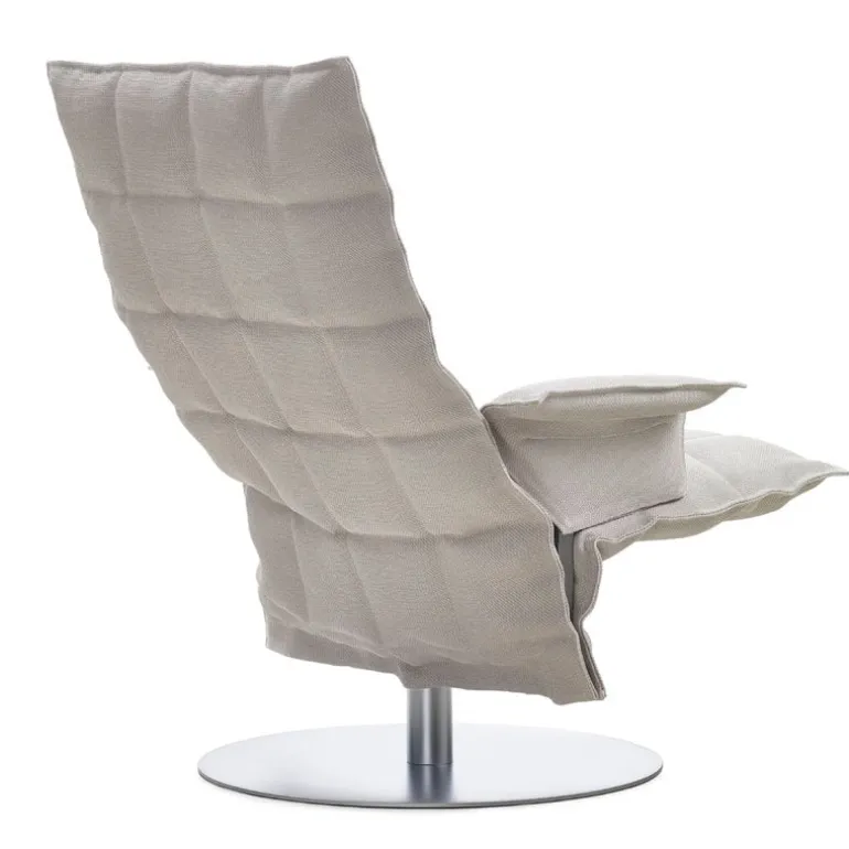 K-stolen är tillverkad av finska Woodnotes, och är en inbjudande fåtölj med ett bakåtlutat, elegant utseende som passar lika bra hemma som i offentliga miljöer. K-stolen har rörformad ram och avtagbar klädsel tillverkad av en smutsavvisande blandning av pappersgarn och bomull. De synliga delarna i stål är belagda med matt kromfinish. K-stolen har nu sköna armstöd, om du vill kan du förhöja bekvämligheten i loungen ett snäpp till med hjälp av K fotpall.