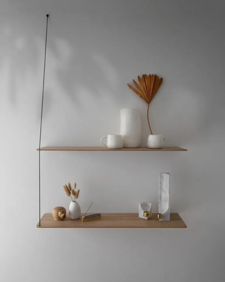 Det här är en tilläggshylla framtagen för hyllan Stedge på 60 cm, från Woud, i vitpigmenterad lackad ek. Hyllenheten Stedge säljs separat.